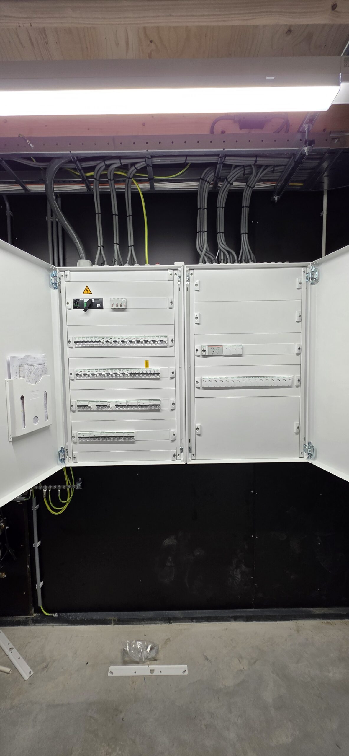 Daarbij is rekening gehouden met onder andere verlichting voor werkplekken, krachtstroomvoorzieningen, verdeelinrichtingen en infrastructuur voor toekomstige uitbreidingen. Door engineering en uitvoering in eigen hand te houden, konden wij een robuuste, veilige en toekomstbestendige installatie realiseren die de werkplaats optimaal ondersteunt.